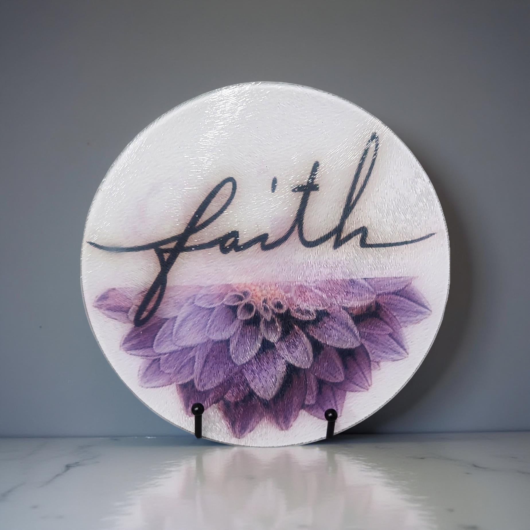 8″ Decorative Glass Round Cutting Board - Spiritual Quotes