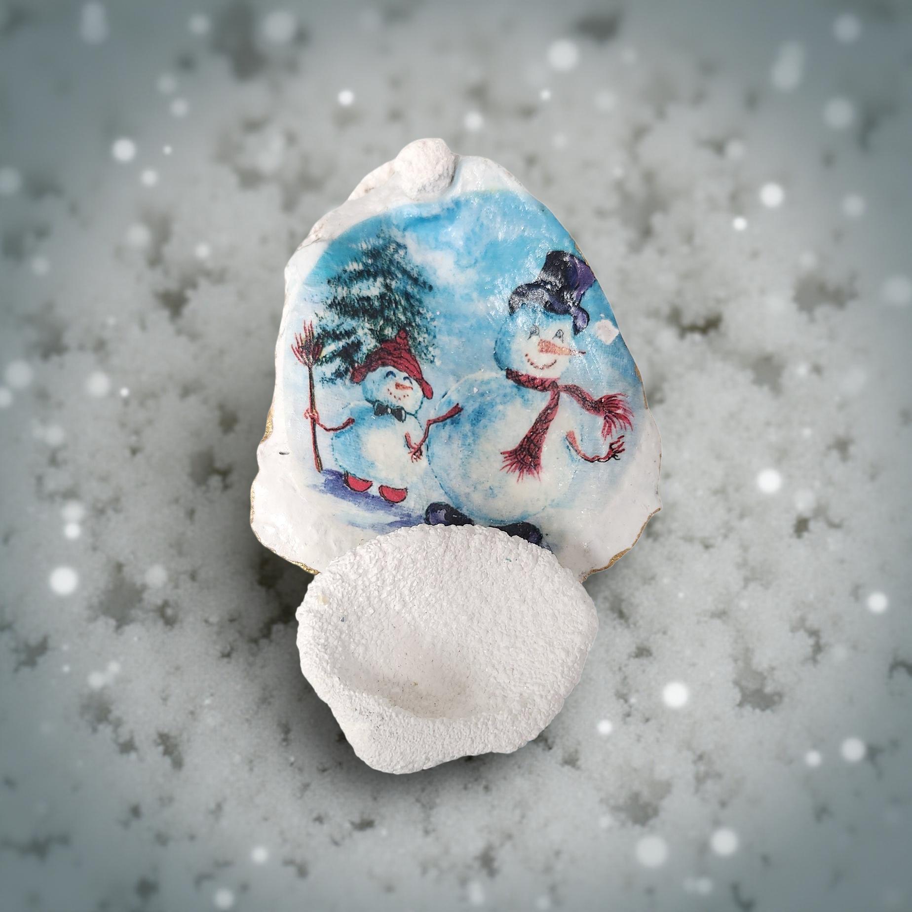 Christmas Oyster Shell - Decoupage Holiday Decor