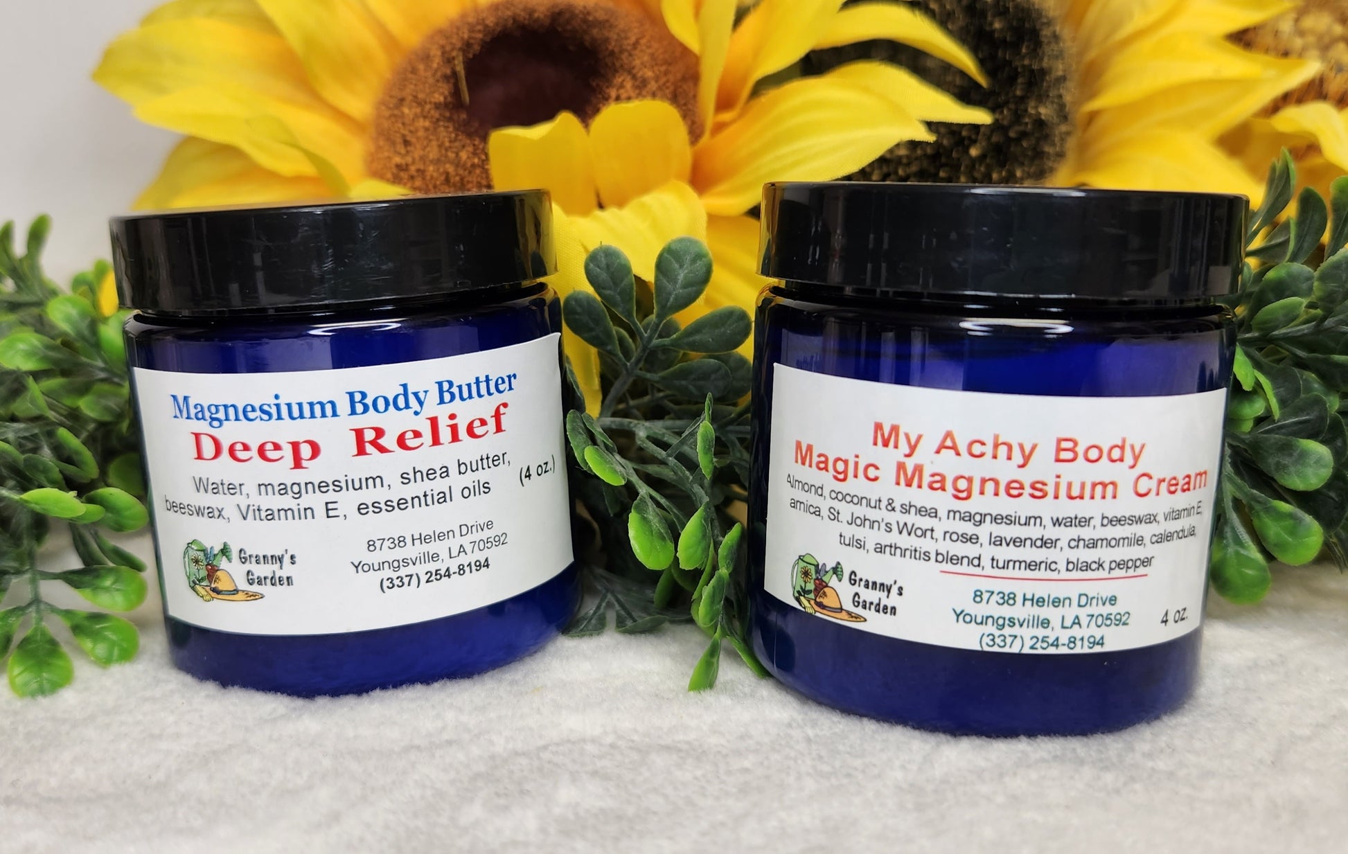 Magnesium Body Butter for Deep Relief is our best seller and a great choice for general body aches and pains. 4 oz
