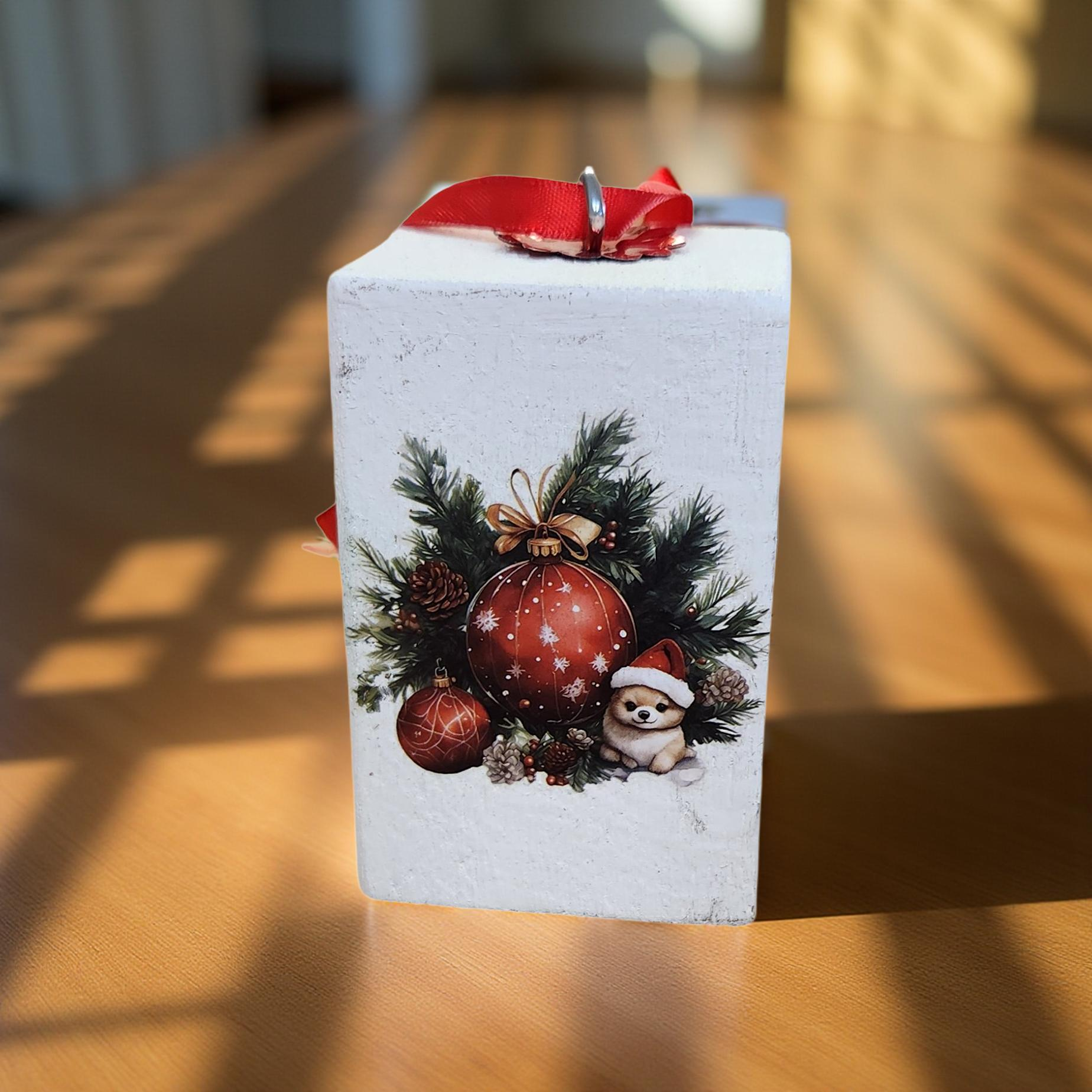 These white cubed Christmas ornaments blend rustic charm with timeless simplicity—each one a tiny canvas of farmhouse elegance. Perfect for tree trimming, tiered trays, or gift toppers that whisper “home for the holidays.” 🐓✨