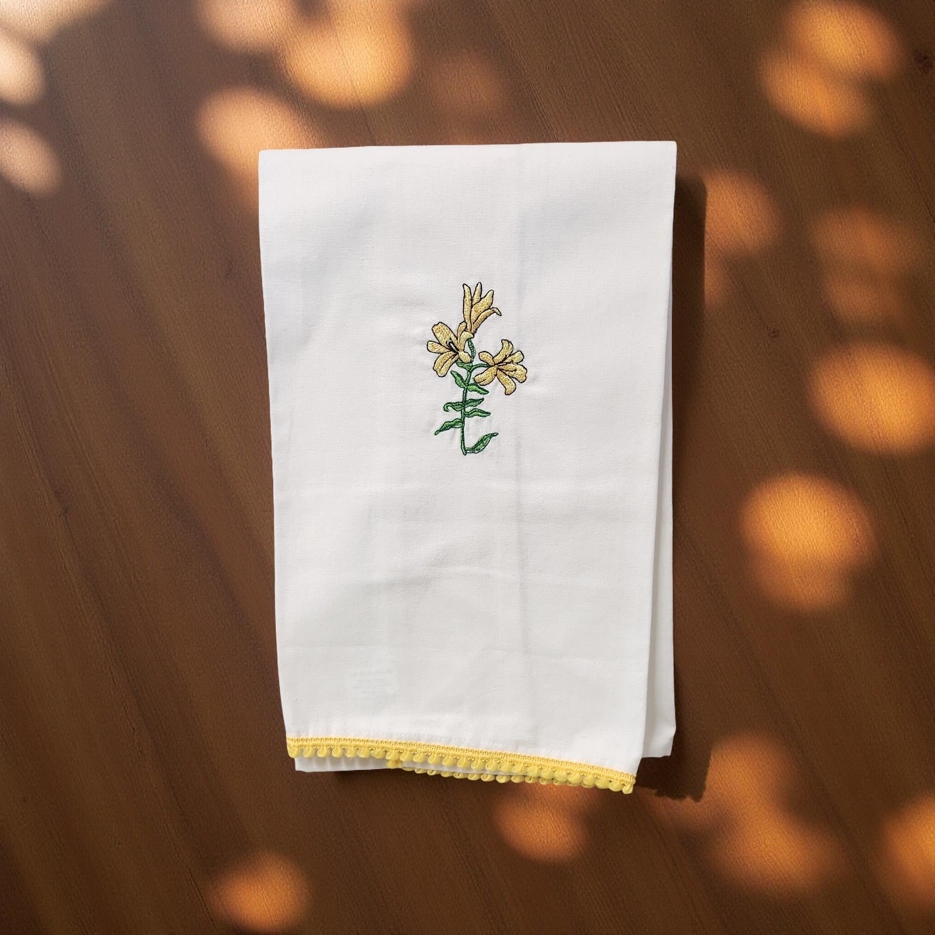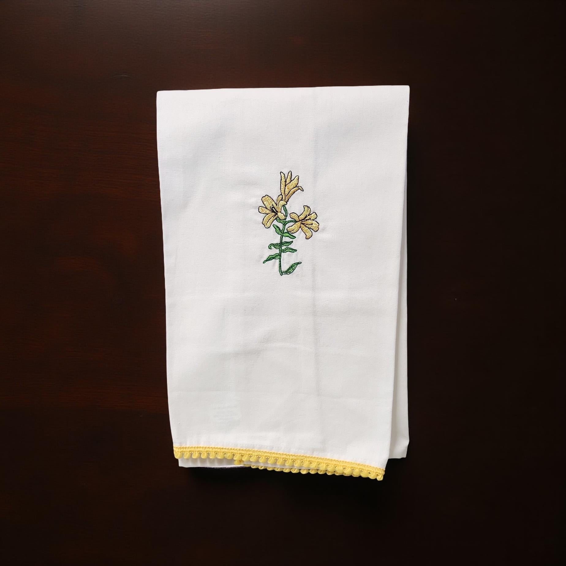 Hand-Crafted Embroidered Day Lily and Floral Theme Hand Towels