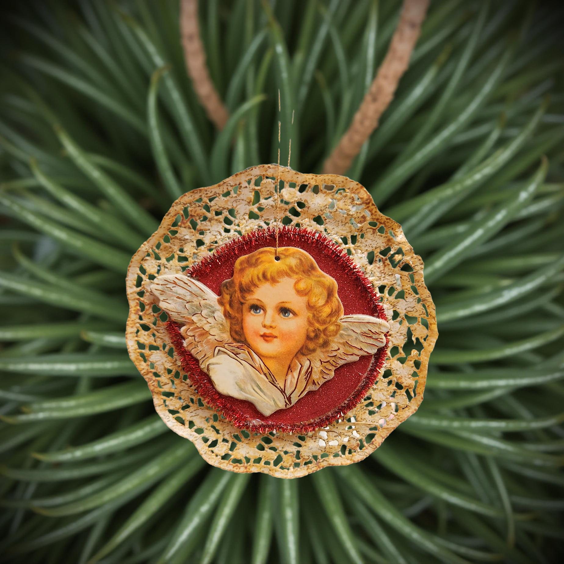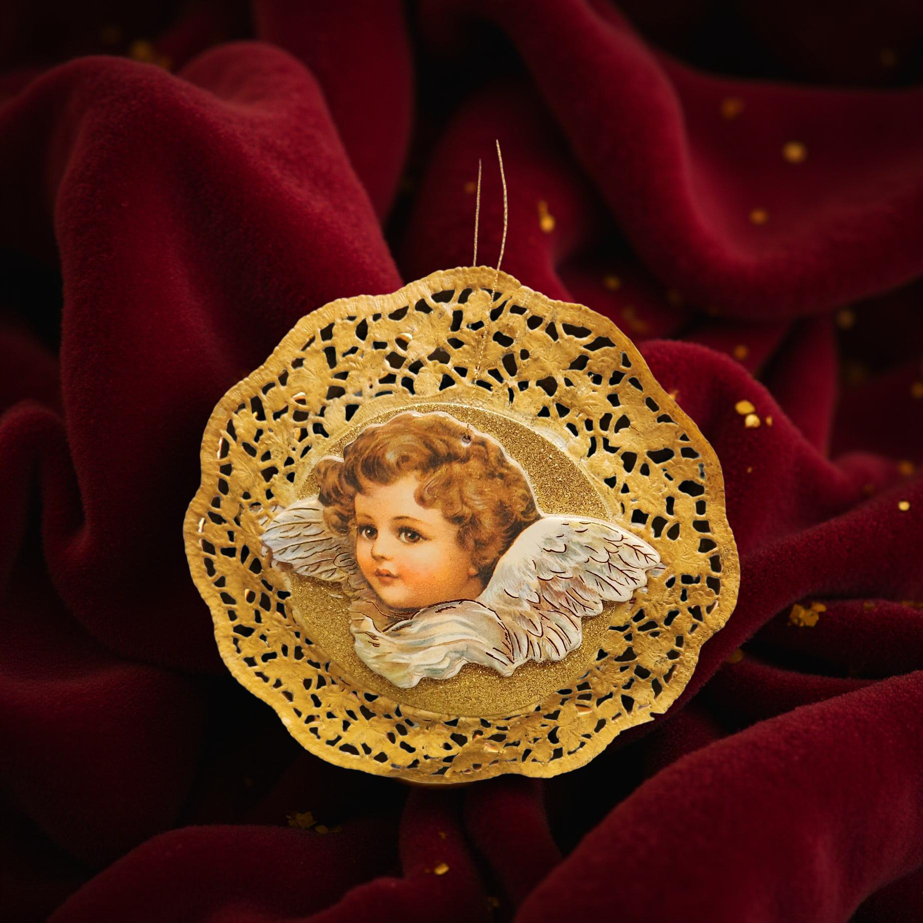 Beautifully hand-crafted vintage ornaments, lovingly embellished with delicate lace and graced by angels on both sides. A perfect addition to your holiday decor—where tradition meets tender artistry. 🎄👼