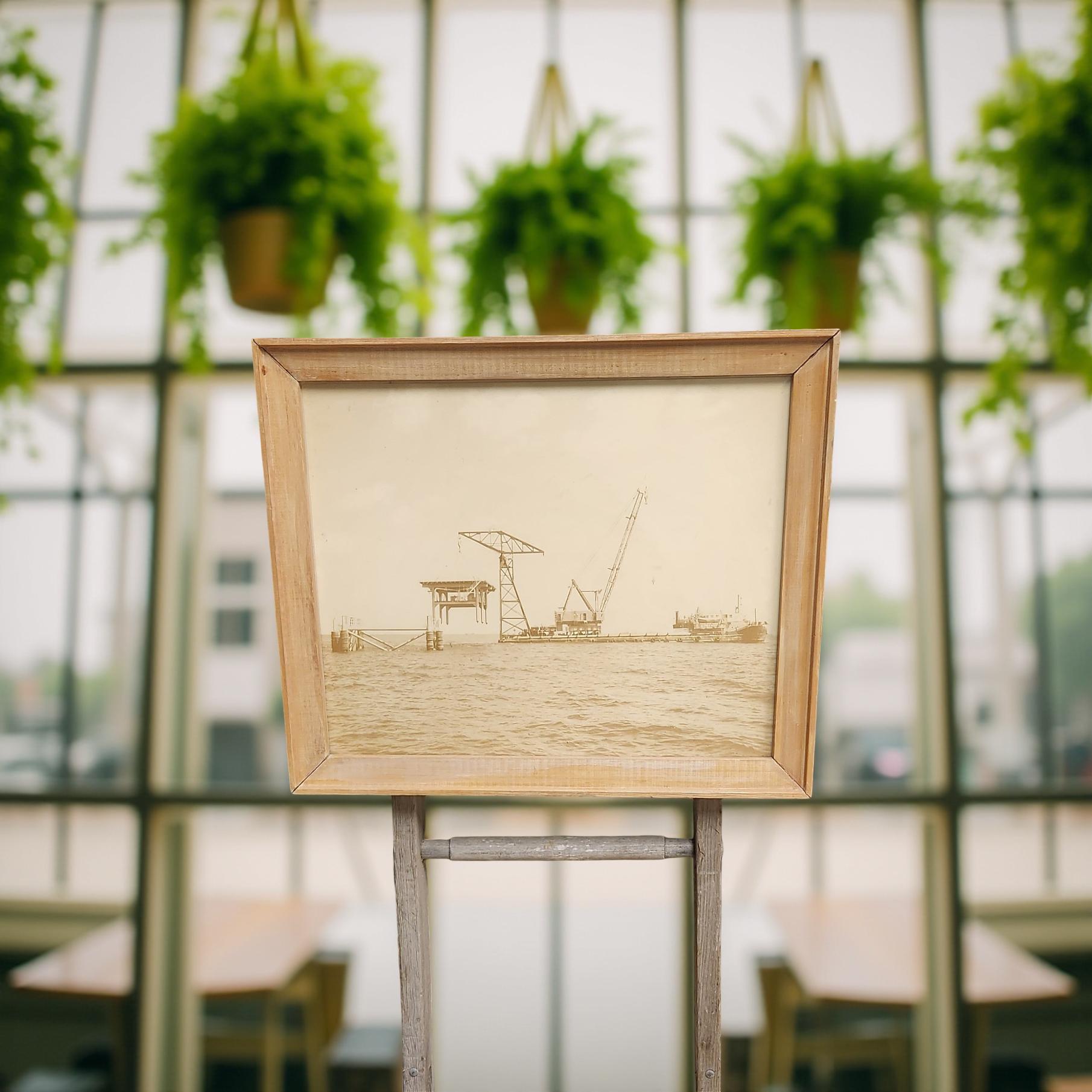 These prints center around the very beginning of oil exploration in Vermillion Bay. They feature the McNamara barge and an early platform. These prints are from the late '60s to early 1970s, I'm not sure of the exact date.