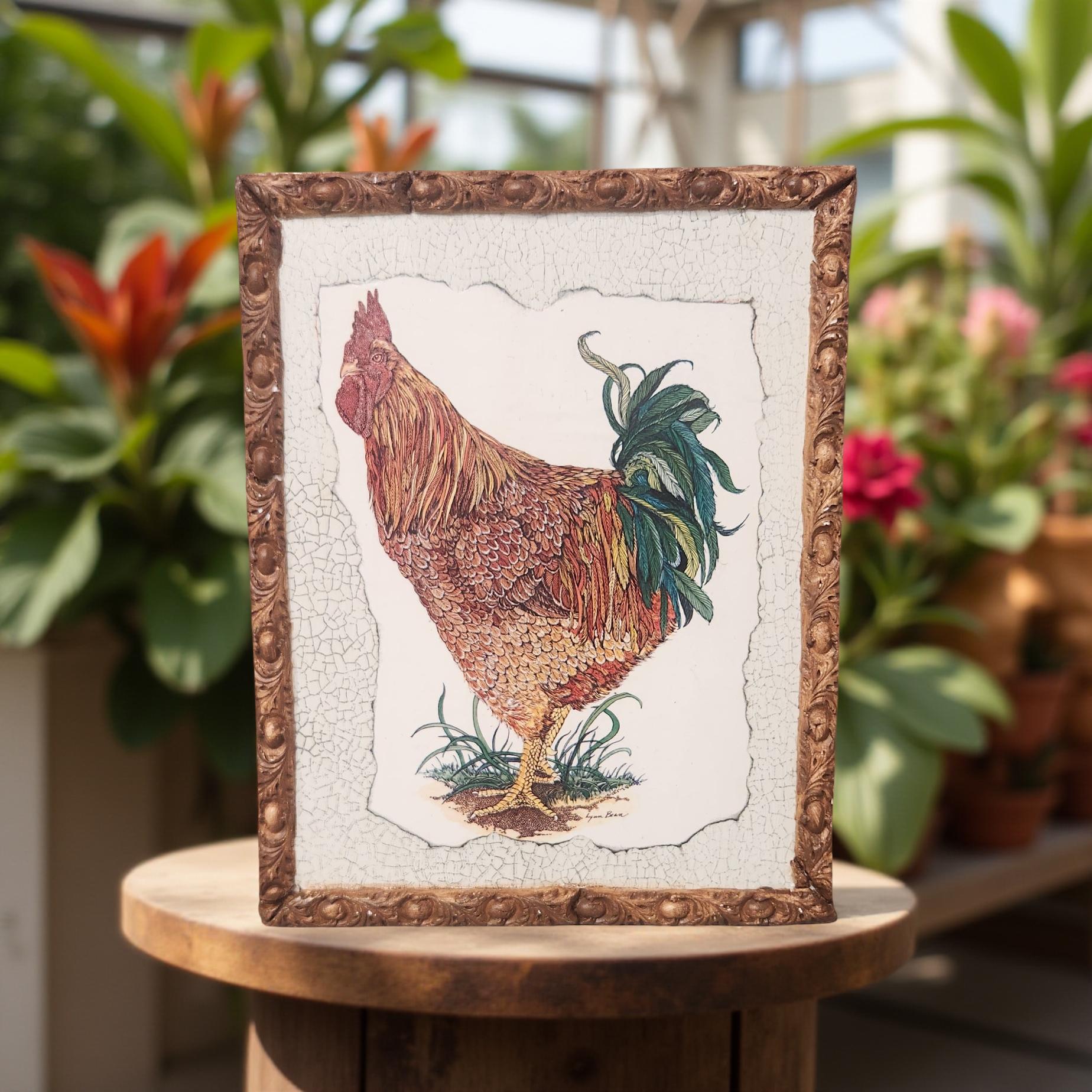 Add a touch of nature to your home with this decorative rooster wall art! Hand-crafted with care, this unique piece will bring a charming and whimsical vibe to any room. Made with high-quality materials, this artwork is perfect for bird lovers and nature enthusiasts alike. Elevate your space with this one-of-a-kind hand-crafted decor!