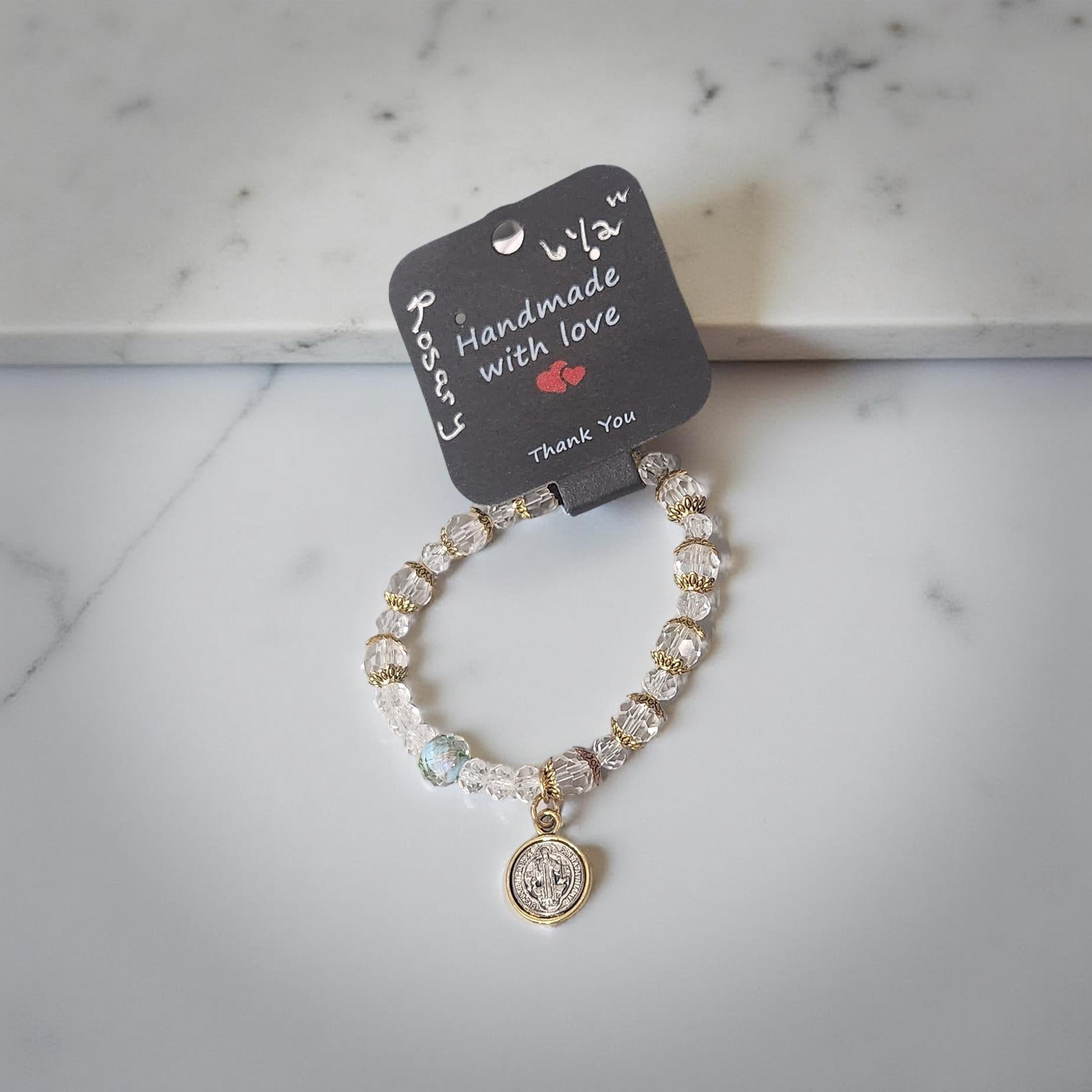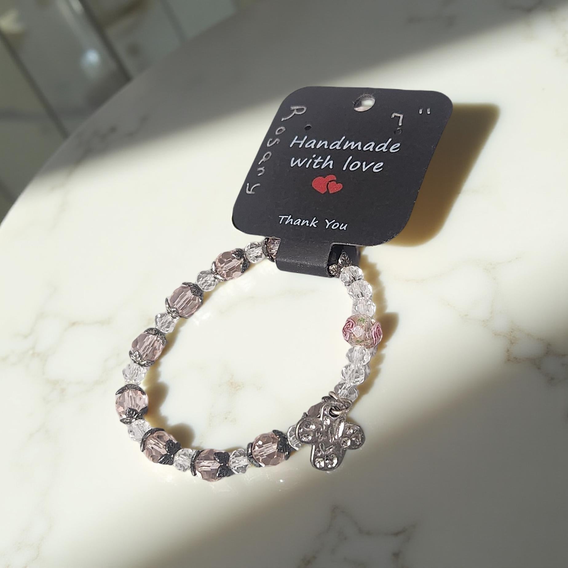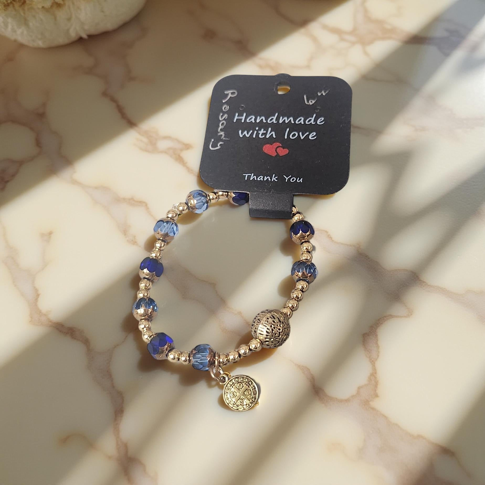 Embrace your faith with this stunning handmade rosary bracelet featuring a beautiful religious charm. Perfect for everyday wear or special occasions. Each bead is lovingly crafted to bring you peace and serenity. An elegant piece that makes a meaningful gift or personal accessory.