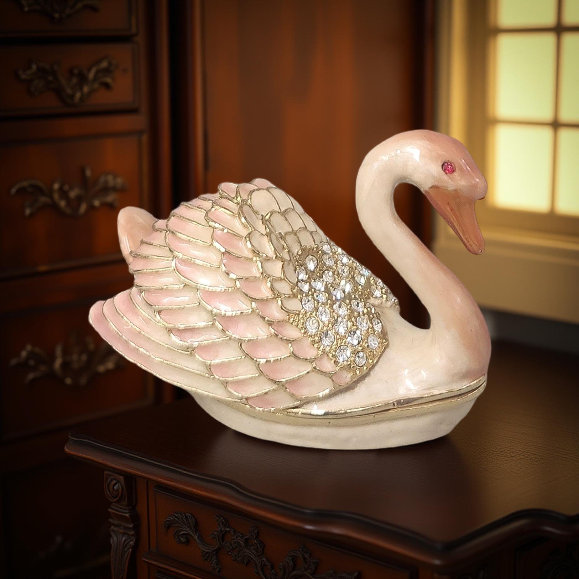 Pink Swan Trinket Box with Rhinestone Embellishments